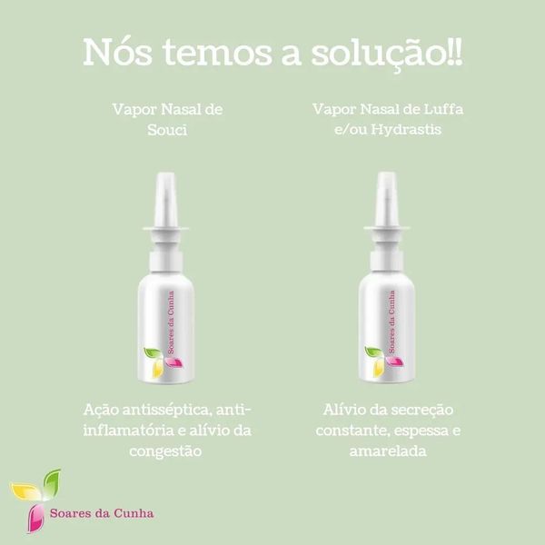 Como solução para esses problemas, temos o Vapor nasal de Souci e o Vapor nasal de Luffa e/ou Hydrastis.